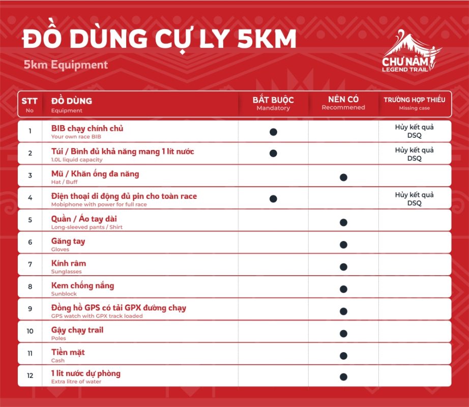 Độ tuổi quy định: VĐV tham gia cự ly 5km phải ít nhất đủ 10 tuổi tính đến ngày thi đấu.